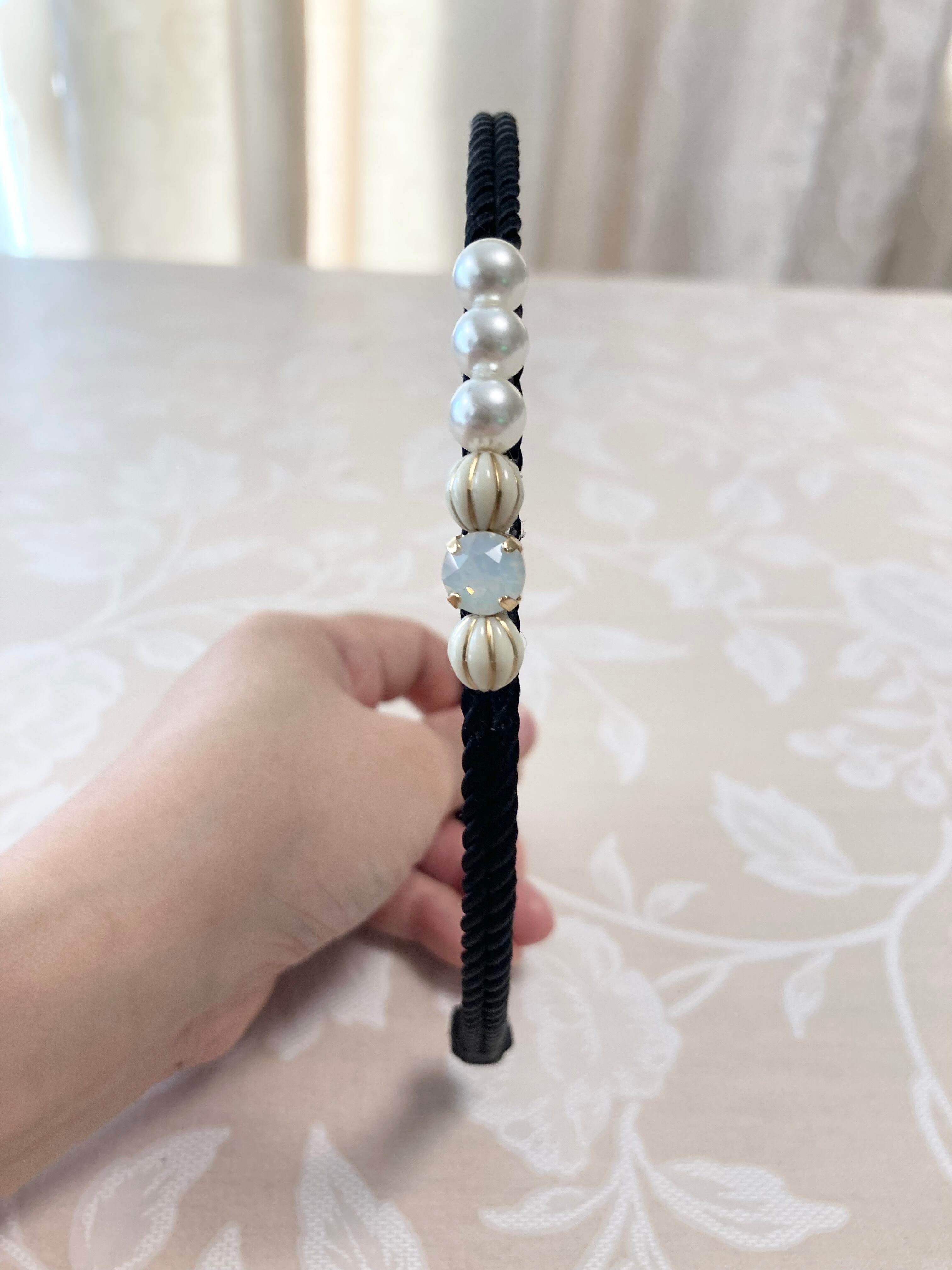 3種類の異素材のパーツを使ったカチューシャです。甘いお菓子のようなカチューシャですが、大人の女性に相応しい、甘くなりすぎないデザインにしました。